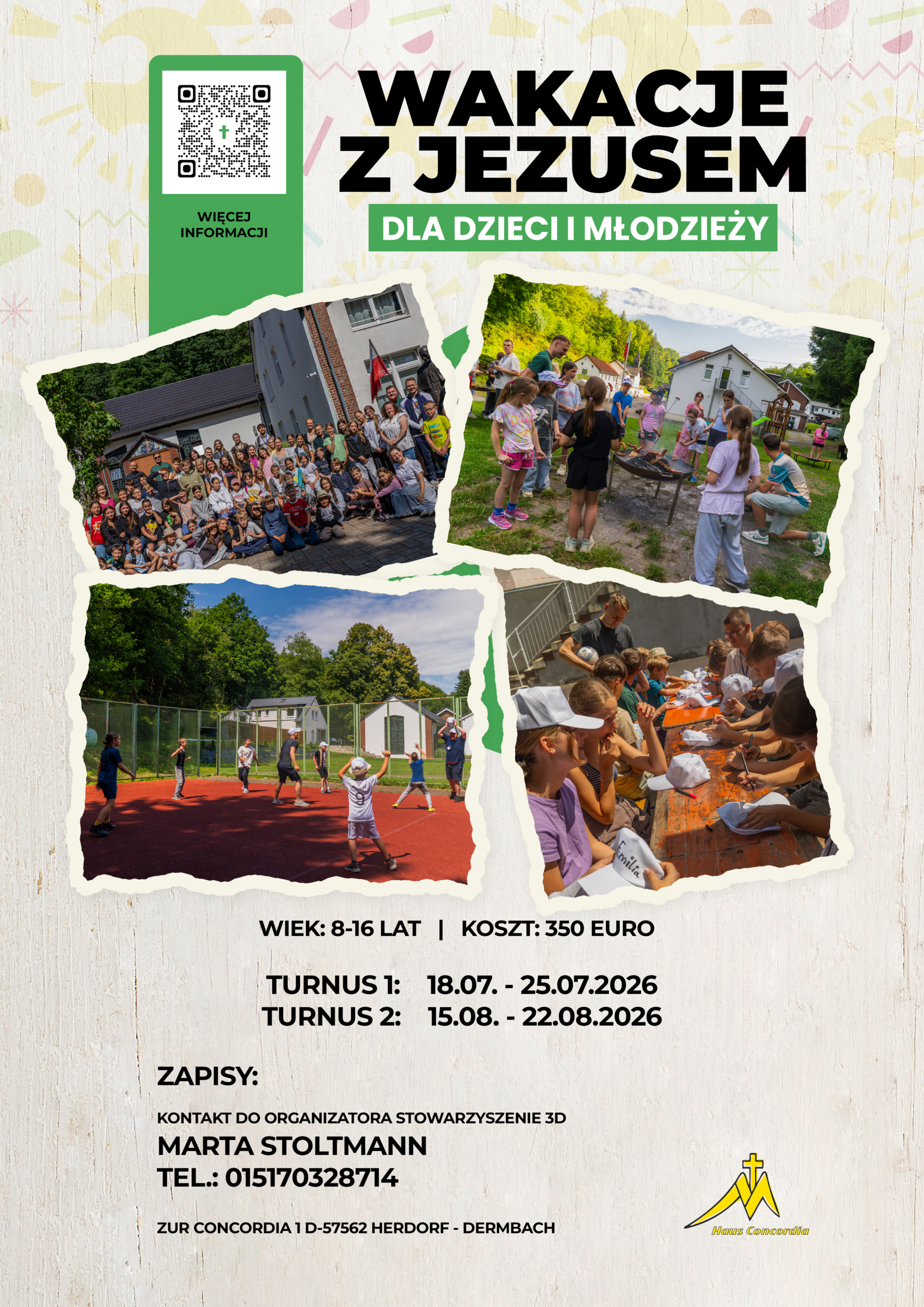 Są takie wakacje, po których wraca się nie tylko z pamiątkami, ale też z sercem pełnym dobra. „Wakacje z Jezusem” w Haus Concordia to czas wspólnoty, radości, zabawy i wiary przeżywanej naturalnie...