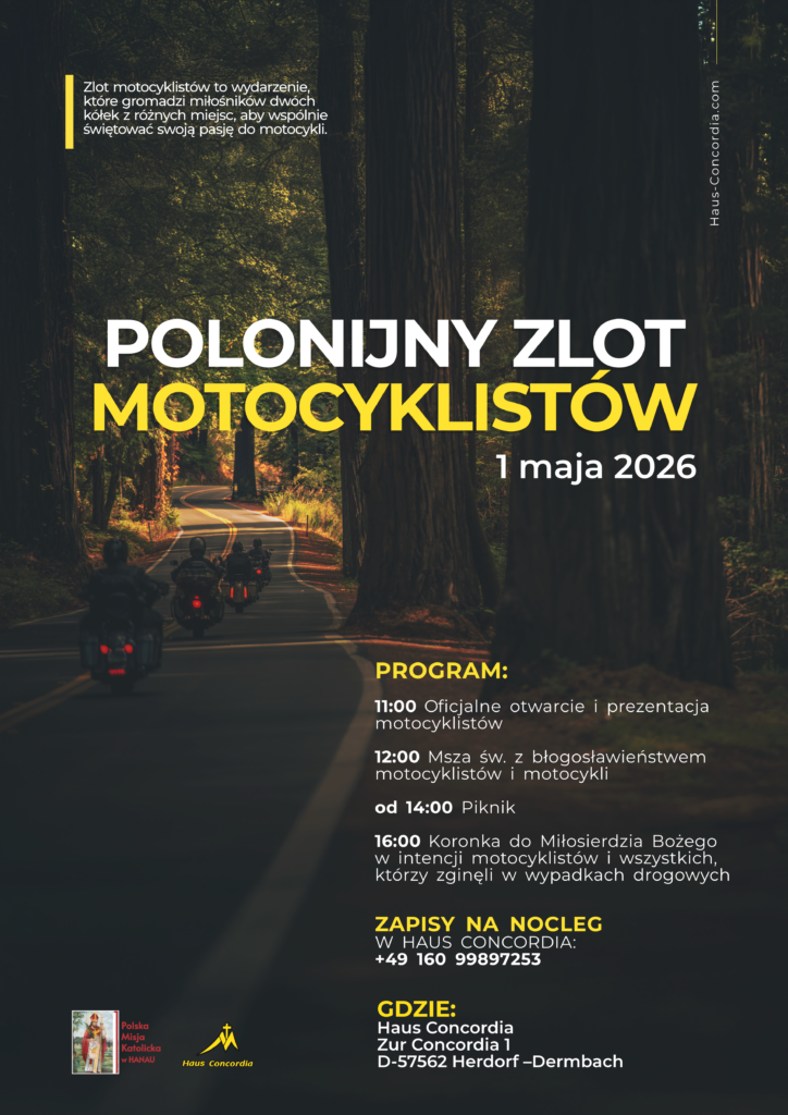 Zapraszamy na wyjątkowe spotkanie miłośników dwóch kółek z różnych miejsc — dzień wspólnej pasji, rozmów, integracji i chwili zadumy. Widzimy się w Haus Concordia na Polonijnym Zlocie Motocyklistów.