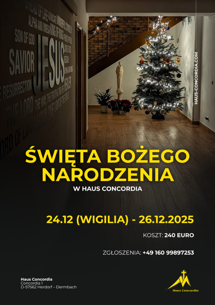 Zapraszamy do przeżycia Świąt Bożego Narodzenia w spokojnej, domowej atmosferze Haus Concordia. To czas, aby zatrzymać się od codziennego pośpiechu, być blisko Pana Boga i po prostu pobyć razem – przy wspólnym stole, modlitwie i rozmowie.