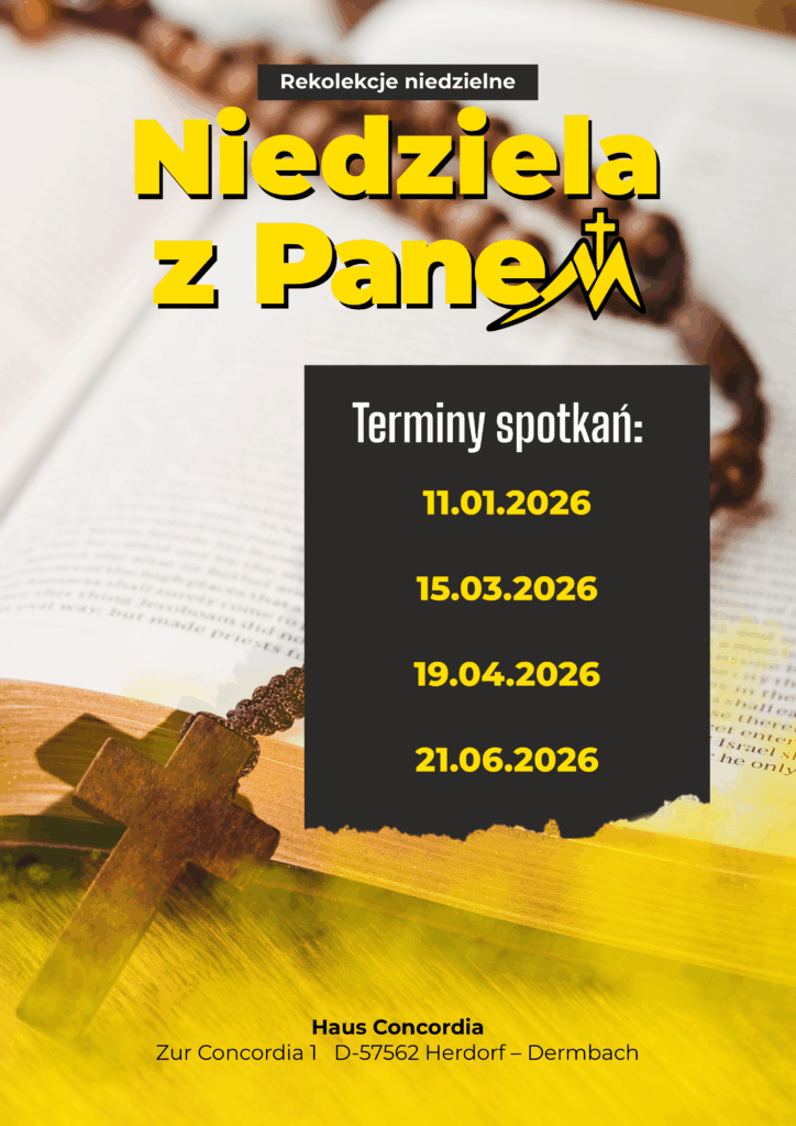 Niedziela z Panem to krótkie rekolekcje, które odbywają się regularnie, co kilka tygodni, w Haus Concordia. To wyjątkowa przestrzeń, aby zatrzymać się na chwilę w rytmie codzienności, wejść w ciszę modlitwy i spędzić czas w bliskości z Panem Bogiem i drugą osobą.